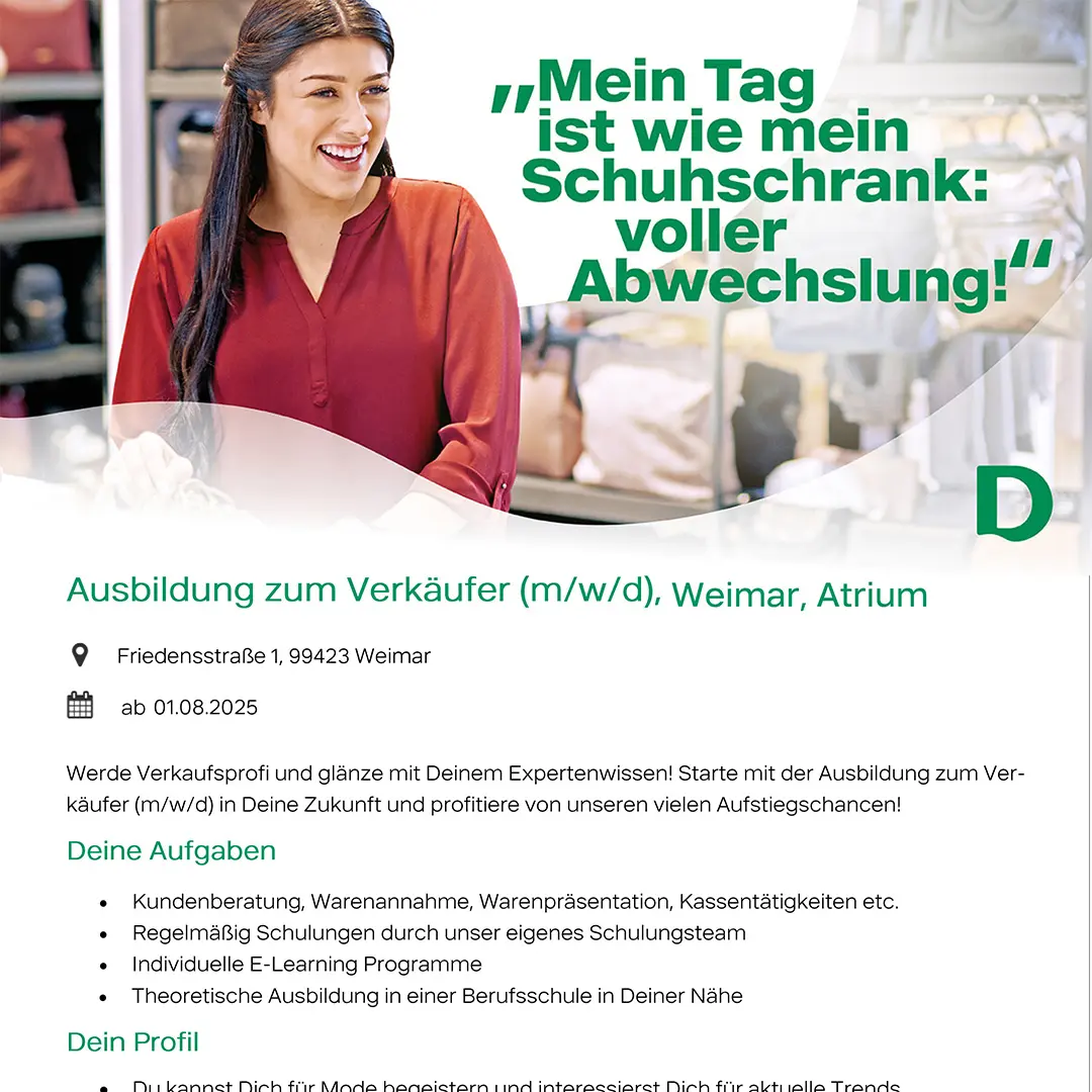 Spannende Tätigkeit in der Modebranche gesucht? Dann komm‘ zu Deichmann!